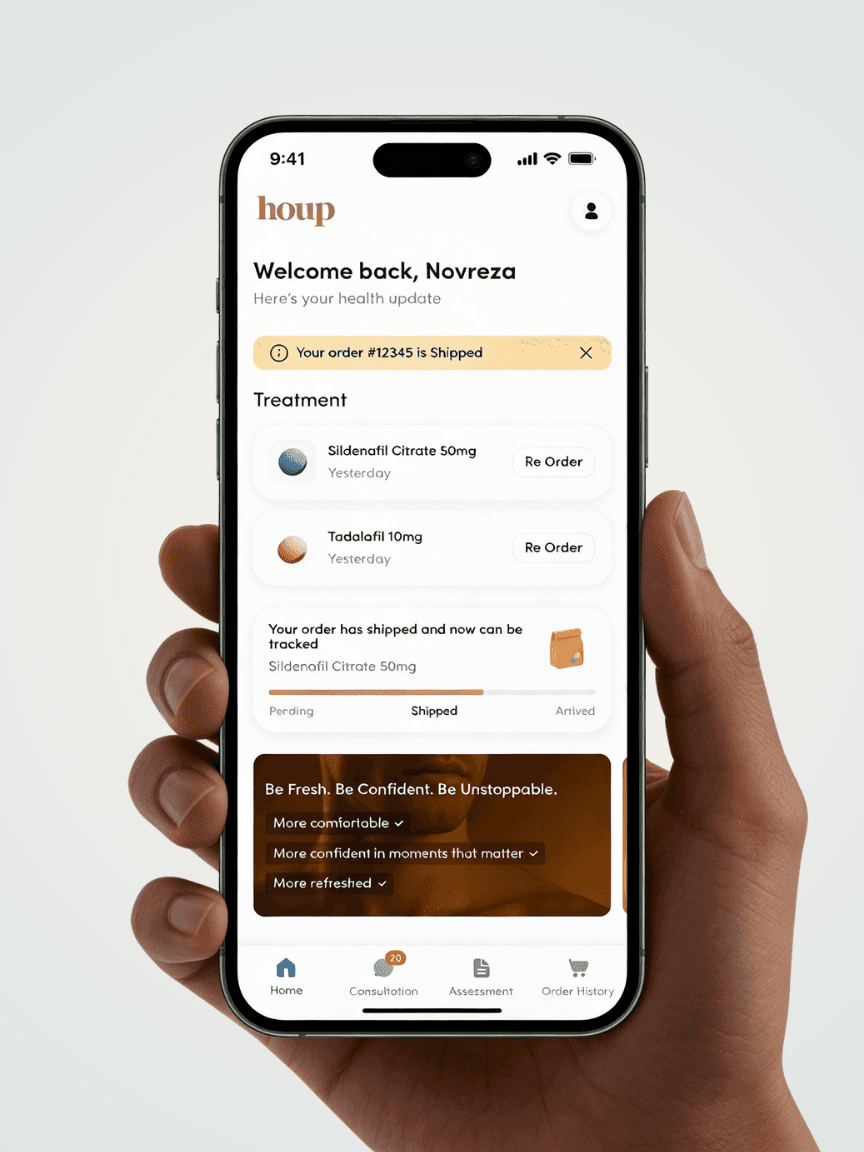 Science-Based ClinicalAssessment: Every customer undergoes an online assessment designed by experienced doctors. This clinically proven process ensures that each treatment recommendation is tailored to individual health conditions. Pressure-Free Consultation: We use an asynchronous assessment system, allowing you to complete the medical questionnaire anytime, without pressure or discomfort. Your data is strictly protected to maintain privacy. Prescription & Discreet Delivery: If medically eligible, our doctors will prescribe the appropriate treatment, and your medication will be delivered directly to your door in discreet, secure packaging.